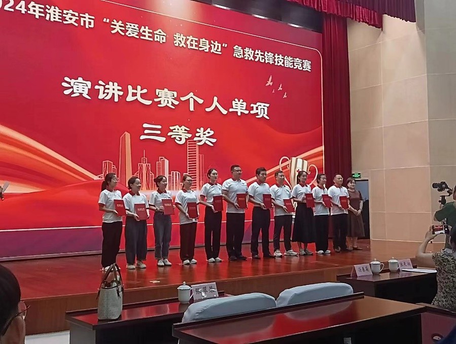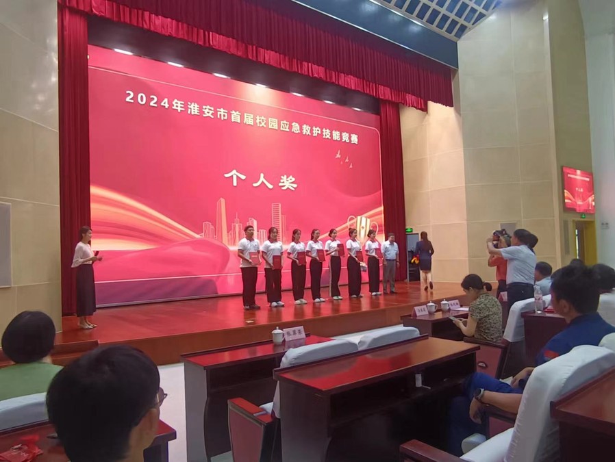 由乐竞岳海青、陈建辉、吴晓平、卞东良、袁孟贤5位教师组成的参赛团队获得淮安市首届校园应急救护技能竞赛团体二等奖和淮安市“关爱生命救在身边”急救先锋技能竞赛救护员组团体组织奖,其中岳海青老师获演讲比赛三等奖,卞东良获技能竞赛个人奖。