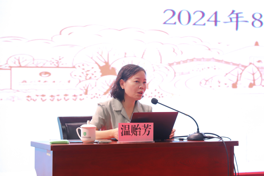 温贻芳作题为《苏州市职业大学产教融合的实践与思考》的专题辅导报告。她首先分析了产教融合推进的逻辑思路,详细解读了苏州市职业大学将“产教融合”作为基石,支撑“三教”系统改革的实践探索路径。最后,她以苏州吴中经济技术开发区机器人与智能制造产教联合体建设为例,介绍了市域产教联合体的基本特征、实体化运营路径和经验启示。