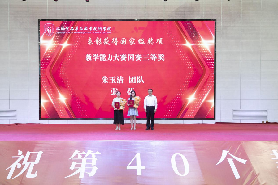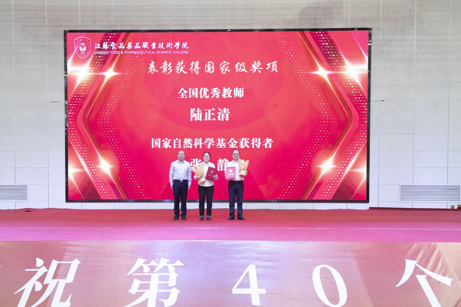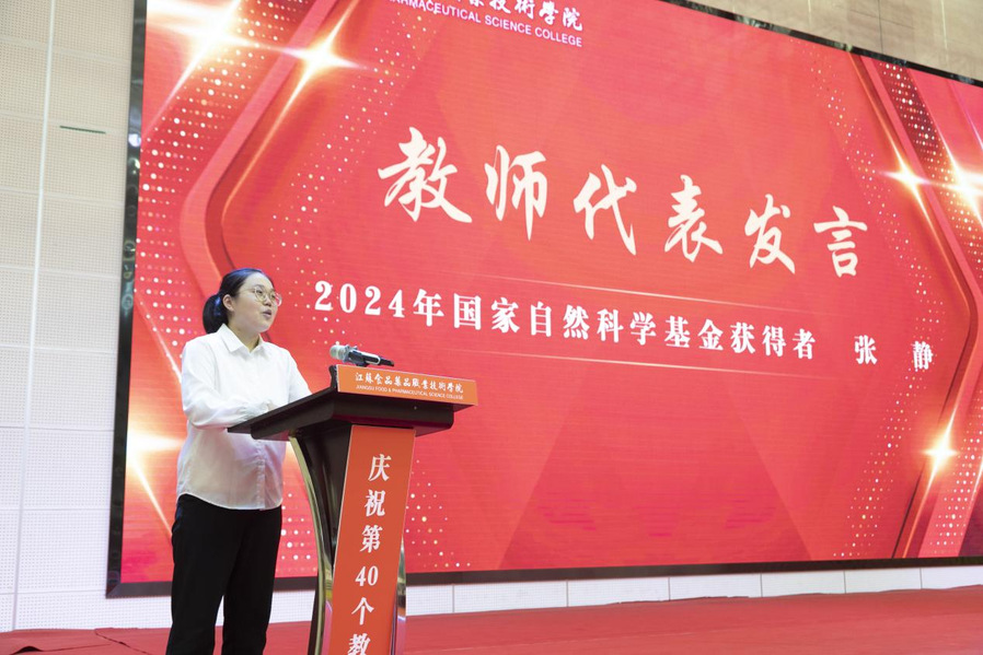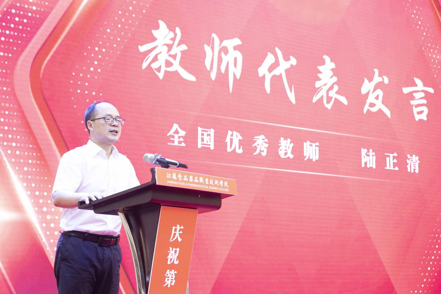 “全国优秀教师”、二级教授陆正清,国家自然科学基金获得者张静博士作为教师代表分别在会上发言。他们分享了在苏食院工作的教书育人、科学研究等方面的心得,并表示将在新时代新征程新赛道上为学校高质量发展贡献自己的绵薄之力。