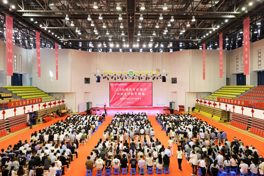 为大力弘扬教育家精神,营造尊师重教的浓厚氛围,表彰激励优秀教师,在第40个教师节到来之际,9月10日下午,乐竞召开主题为“大力弘扬教育家精神,加快建设教育强国”的庆祝教师节暨表彰大会。党委书记薛宇,校长翟玮玮,党委副书记安进,纪委书记夏燕萍,副校长张军、焦宇知,党委委员周耀明、丁正亚出席会议。全体教职工、学生代表共800余人参加大会。大会由党委副书记安进主持。