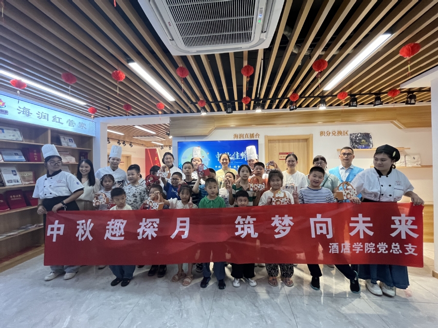9月15日下午,在中秋节来临之际,酒店学院鼎红服务志愿队与鼎红工坊社团的师生们前往港口社区,开展“中秋趣探月 筑梦向未来”主题活动,与社区居民一起探寻中秋文化、探秘嫦娥工程、探索月饼制作,近二十个家庭参加了此次活动。