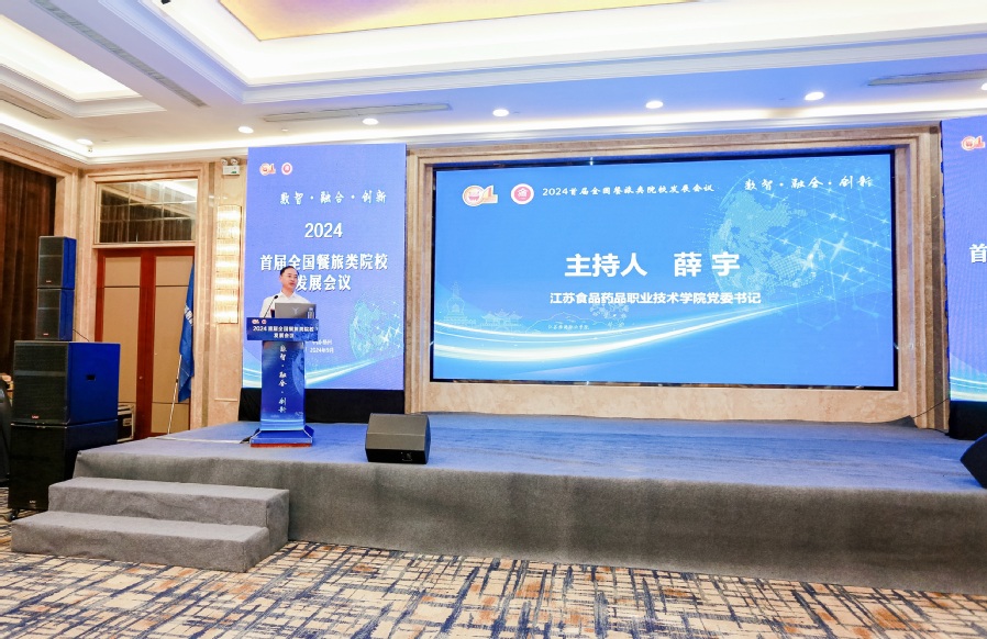 本次会议由中国烹饪协会、江苏旅游职业学院共同主办,全国餐饮职业教育教学指导委员会、中国烹饪协会餐饮教育工作委员会、江苏省餐饮行业协会、全国数字餐饮与营养膳食产教融合共同体协办。此次会议以“数智·融合·创新”为主题,以新质生产力背景下餐旅类院校办学能力提升为目标,通过政策解读、主旨报告、圆桌对话、专题分享形式展开。党委薛宇书记主持了其中的主旨报告。酒店学院相关人员参会并参与圆桌论坛进行经验交流。
