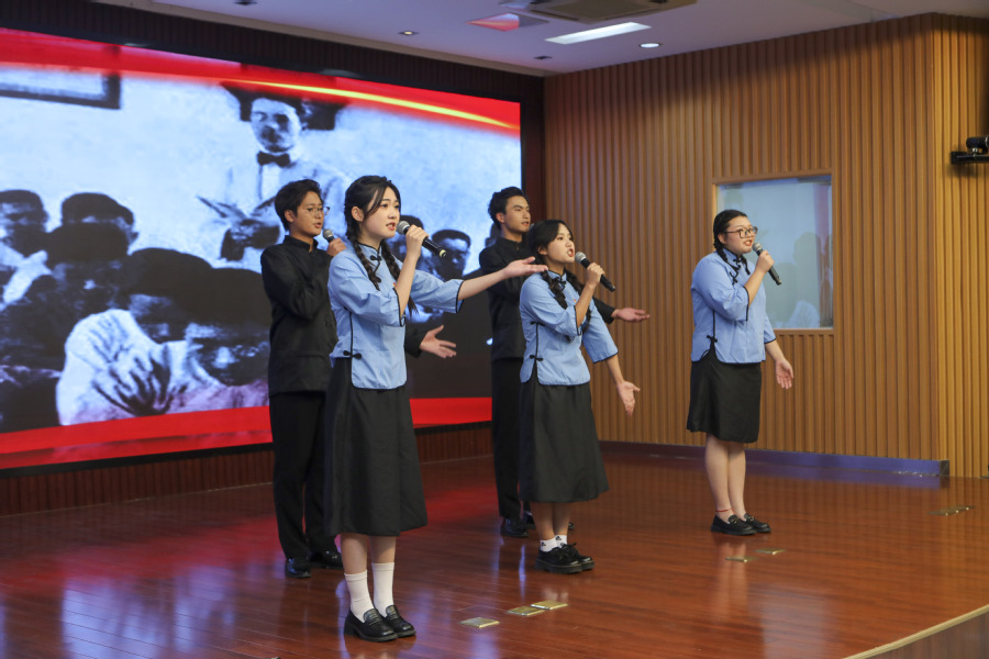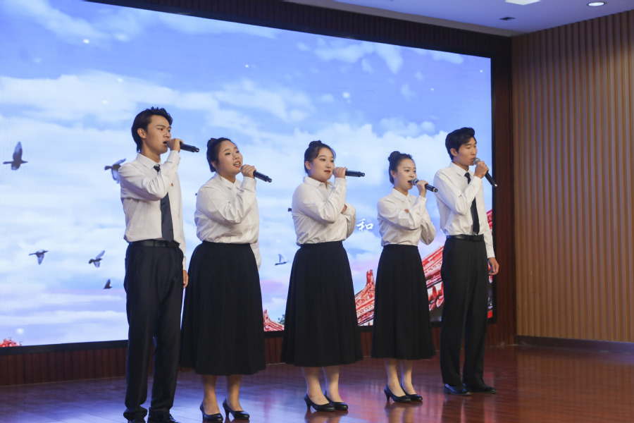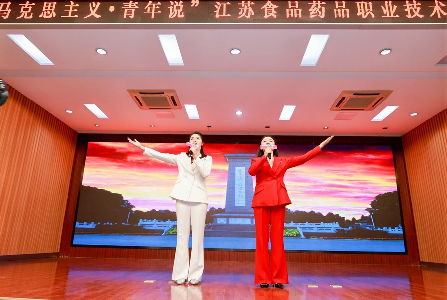 在“拥抱新淮安,奔赴新时代”篇章中,师生们值新中国成立75周年之际合唱《我和我的祖国》,表达对祖国的无限热爱与祝福。主题演讲《“食”不我待,技能报国》讲述了技艺精湛的“女焊神”孙景南的故事,强调食品药品领域对国民幸福的重要性,激励青年学子以工匠精神投入新时代建设。朗诵《新中国华章,七十五载辉煌》回顾了新中国成立75年来在中国共产党领导下取得的成就,激励全国人民继续为中华民族的伟大复兴而奋斗。