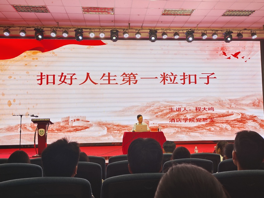 2024年9月26日上午,酒店学院邀请校关工委副主任、原乐竞副校长程大鸣,在教学楼C115为2024 级新生带来了一场意义深远的讲座——《扣好人生第一粒扣子》。