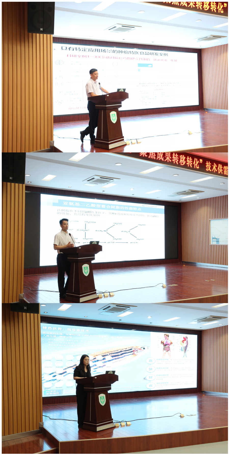 学术报告环节中,江苏省中枢退行性疾病治疗药物开发与应用工程研究中心主任井立佳做题为“面向特定医疗场景的肿瘤特医食品研发”的报告;食品药品检测苏食药技能大师工作室负责人何健做题为“高盐样品中痕量重金属精准检测技术”的报告;环特生物大健康事业部负责人周佳丽做“斑马鱼技术助力食品创新研发”报告。与会企业积极参与交流,对学术报告中提到的研究热点、技术难点表达了进一步开发和组织培训的合作意愿。