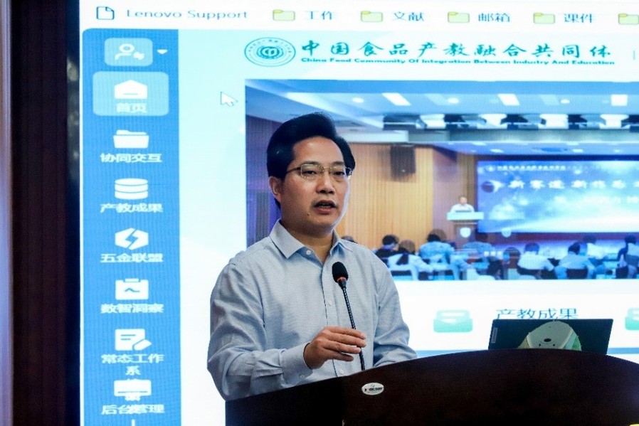 淮安市绿色食品产教联合体秘书长於文刚做了联合体工作报告,主题为“依托智慧服务平台的绿色食品产业供需对接进展”,详细介绍了依托智慧平台分享及对接技术成果、育才荐才、产学研合作等供需信息的进展,并表示我们将持续建设和完善服务绿色食品产业的信息化平台建设,助力打造新质生产力。