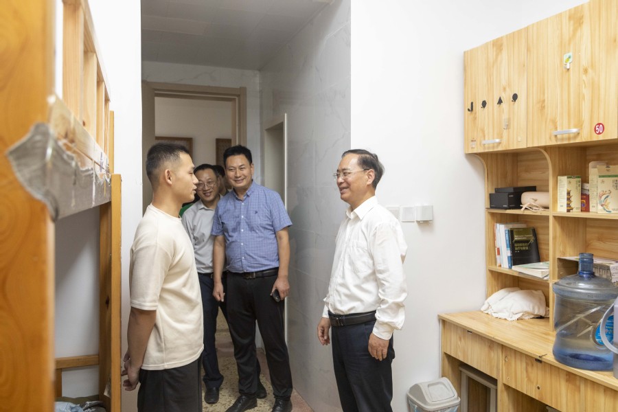 检查组一行先后对即将奠基开工的产教融合大楼工地、危化品仓库、食堂、学生公寓、浴室和超市等重点部位进行了检查。在各个检查现场,薛宇先后听取了有关部门负责人的情况汇报,并和部分师生员工进行了交流。在检查过程中,每到一处薛宇均会针对容易发生安全隐患的点位提出了指导意见。