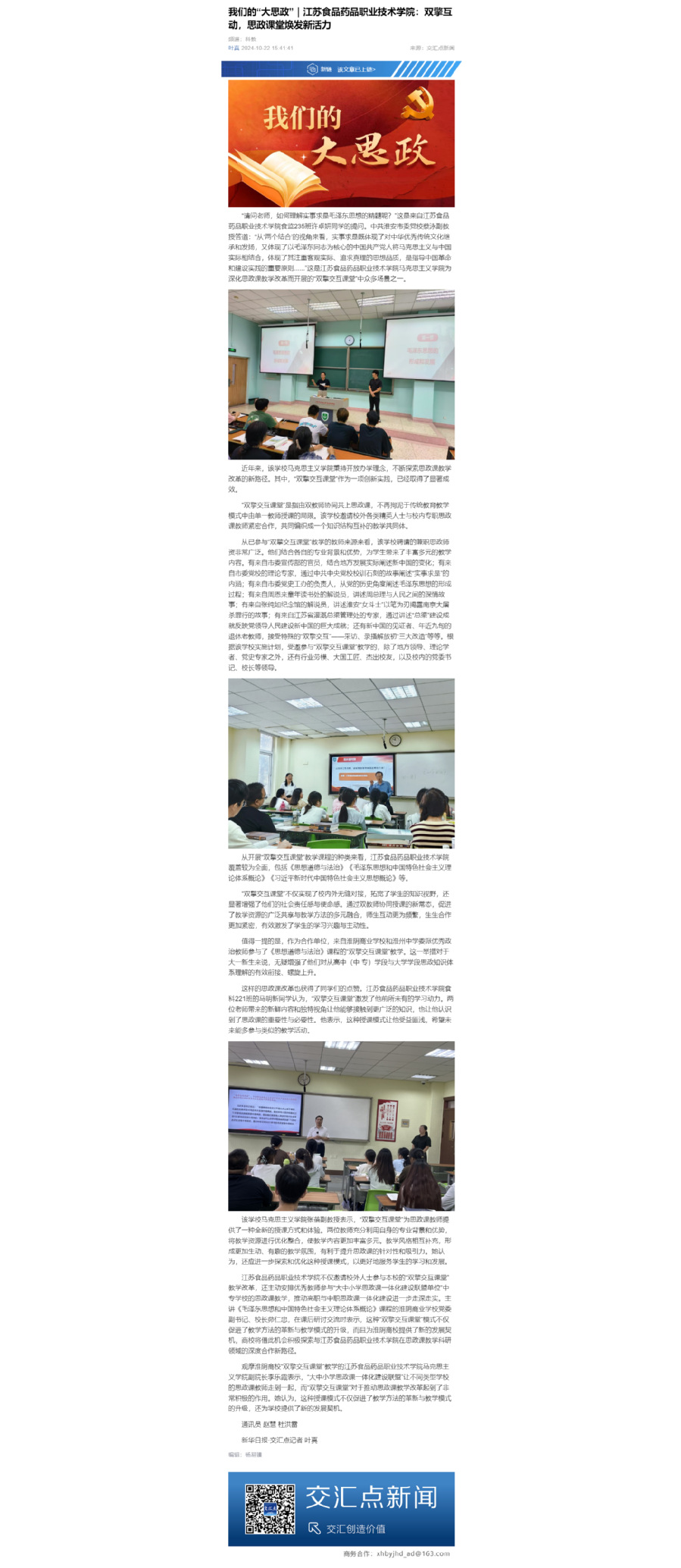 近年来,该学校马克思主义学院秉持开放办学理念,不断探索思政课教学改革的新路径。其中,“双擎交互课堂”作为一项创新实践,已经取得了显著成效。