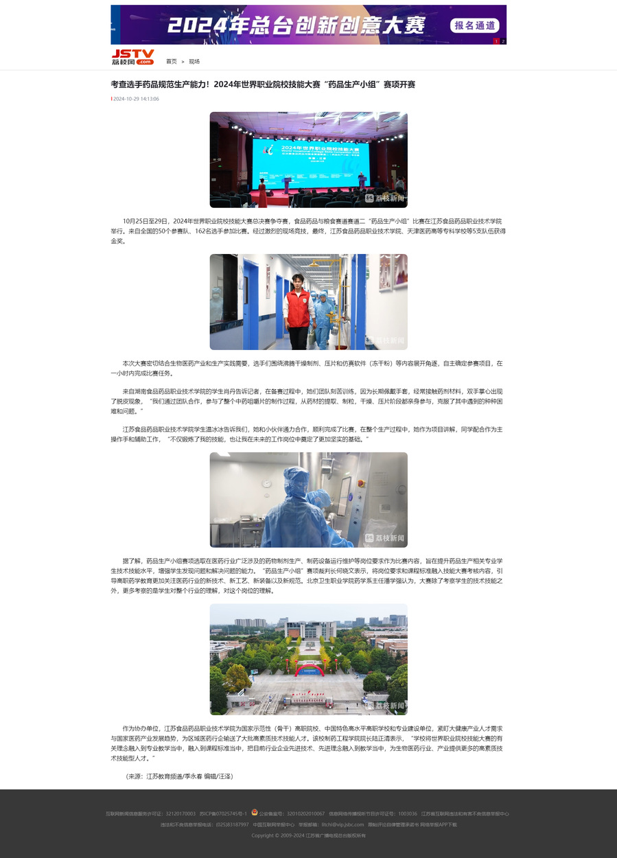 10月25日至29日,2024年世界职业院校技能大赛总决赛争夺赛,食品药品与粮食赛道赛道二“药品生产小组”比赛在乐竞举行。来自全国的50个参赛队、162名选手参加比赛。经过激烈的现场竞技,最终,乐竞、天津医药高等专科学校等5支队伍获得金奖。