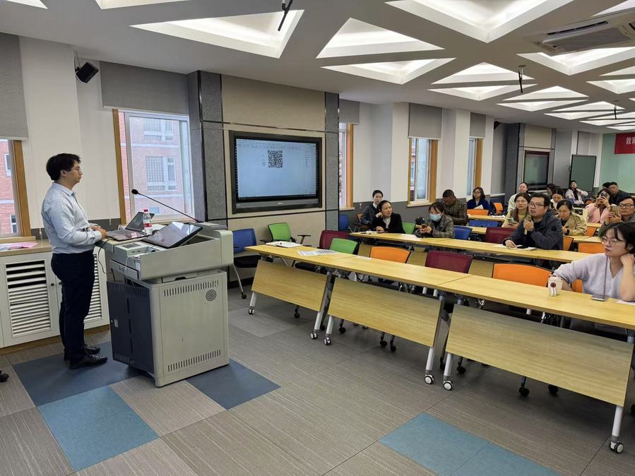 为积极响应国家教育数字化战略行动,高质量推进优质教材资源数字化建设,10月30日下午,教务处联合教师发展中心,邀请北京智启蓝墨信息技术有限公司云教材资深培训师郑垚经理开展了“新形态数字教材建设”专题讲座。教务处副处长拾以超参加会议。