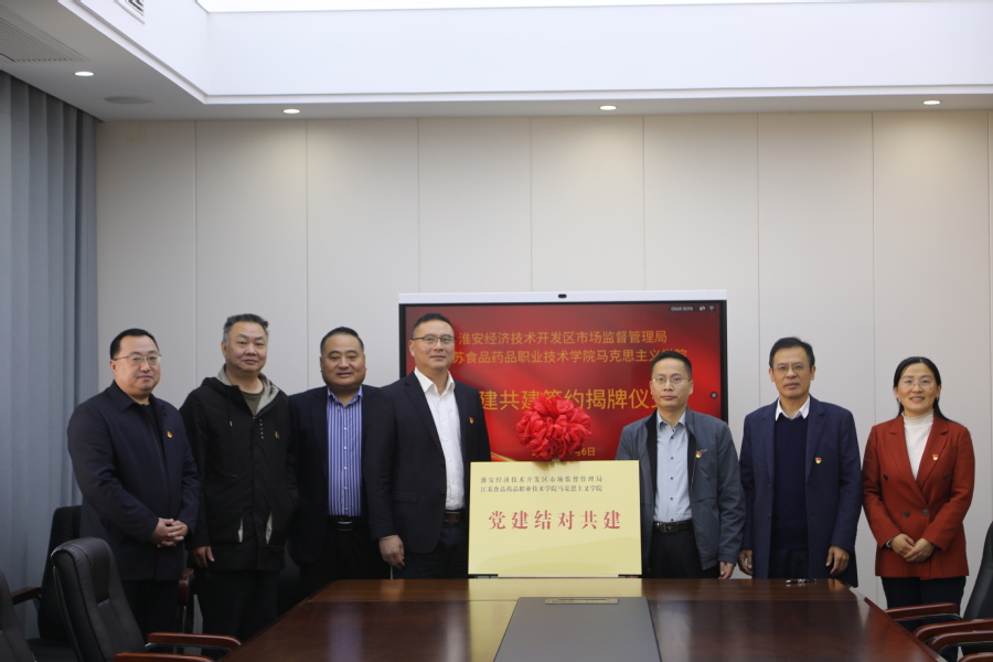 11月6日上午,马克思主义学院与淮安经济技术开发区市场监督管理局举行党建共建签约揭牌仪式。淮安经济技术开发区市场监督管理局党组书记、局长朱兵,学校党委委员、宣传部部长、马克思主义学院直属党支部书记丁正亚,马克思主义学院院长赵慧等出席仪式。仪式由赵慧主持。
