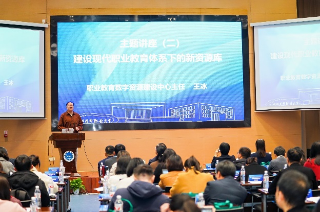 联盟会启动仪式后,四场专家报告精彩纷呈。职业教育数字资源建设中心王冰主任围绕《建设现代职业教育体系下的新资源库》这一主题,梳理了资源库建设的内在逻辑,指导了新资源库建设方向;浙江机电职业技术大学丁明军教授《专业资源库建设及国家精品课程建设》专题报告,介绍了资源库与国家精品课程建设融合的有效途径;杭州科技职业技术学院陆亚文教授以《AIGC在教学研究中的应用实践》为题,围绕AI助教/研、助学、助评、助管,阐述了人工智能在教学过程中应用的核心场景;高教社智慧职教浙江服务中心资深编辑谷雨作《数字教材赋能智慧教学》专题报告,从数字化教材的内涵、在教学过程中呈现形式以及推动教学模式创新等方面做了详细的经验分享。
