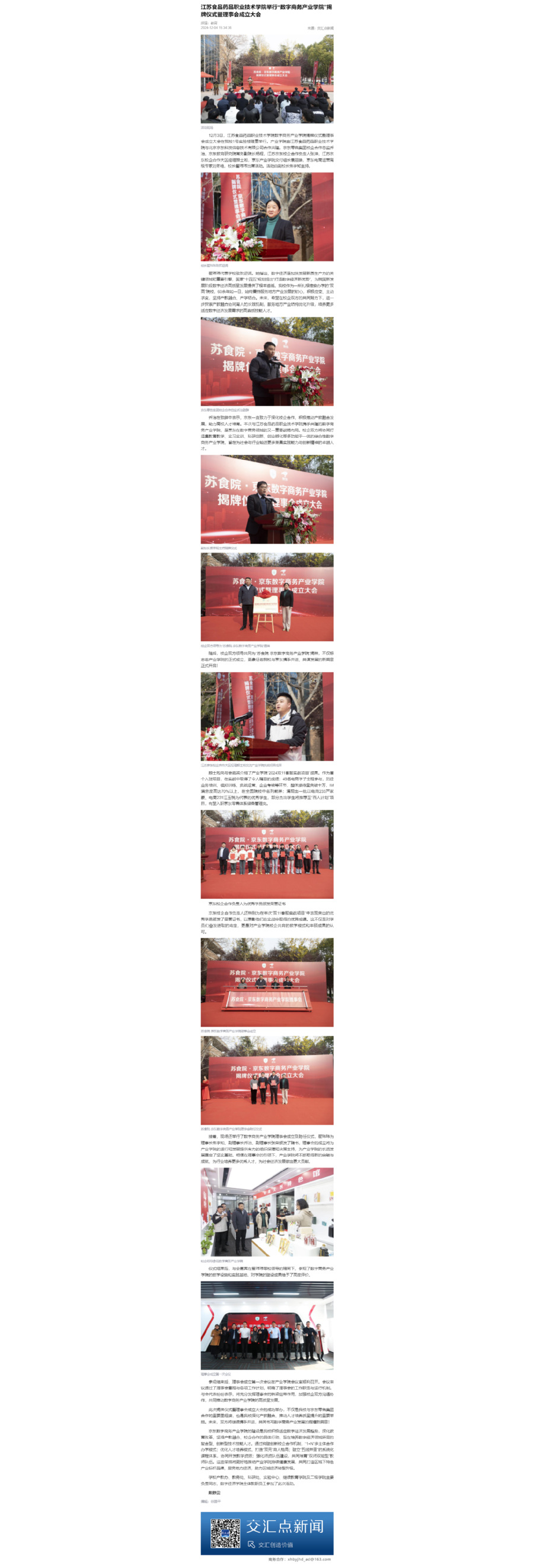 随后,校企双方领导共同为“苏食院·京东数字商务产业学院”揭牌,不仅标志着产业学院的正式成立,更象征着乐竞与京东携手并进、共谋发展的新篇章正式开启!