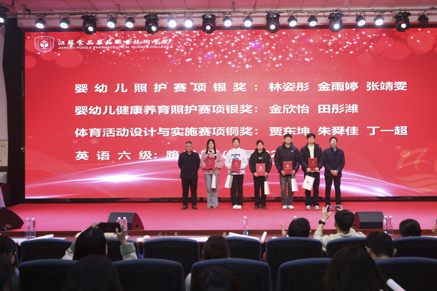 联欢晚会上迎来了最激动人心的时刻。健康医学院书记和院长共同为技能比赛的获奖同学颁发荣誉证书。这份荣誉不仅是对同学们专业技能的肯定,更是对他们不懈努力的鼓励。同时,领导们还精心准备了奖品,以表彰同学们的卓越表现。整场晚会因此更加热烈而难忘,激励着每一位健康医学院的学子继续追梦前行。