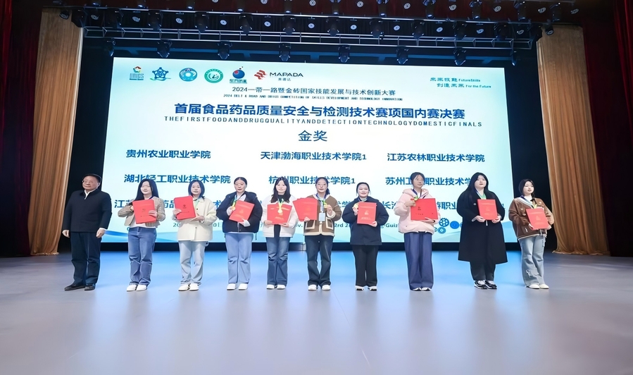 12月1日至2日,2024年金砖国家技能发展与技术创新大赛首届食品药品质量安全与检测技术赛项在贵州农业职业学院举行。食品学院陆怡宁、焦汐颜、欧阳文三位同学荣获团体一等奖;黄颖琳、马思远、杨露露荣获团体二等奖。李新建、姜英杰、曹阳、李艳霞四位老师荣获优秀指导教师奖。