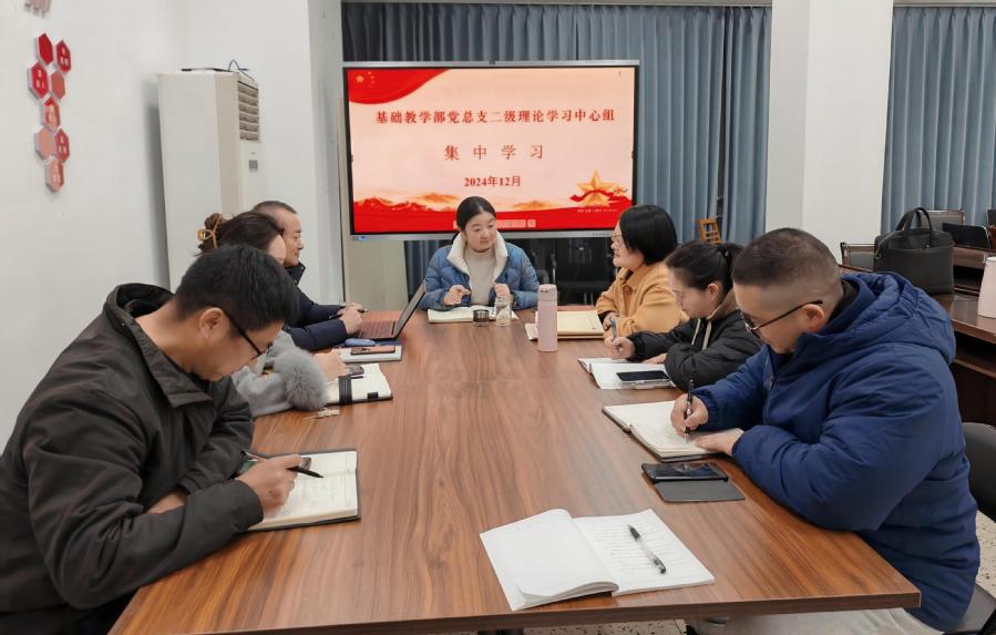 12月10日下午,基础教学部党总支召开二级理论学习中心组集中学习,校长翟玮玮巡学旁听到会指导。基础教学部党总支书记郑洪成主持,二级理论中心组全体成员参加学习。