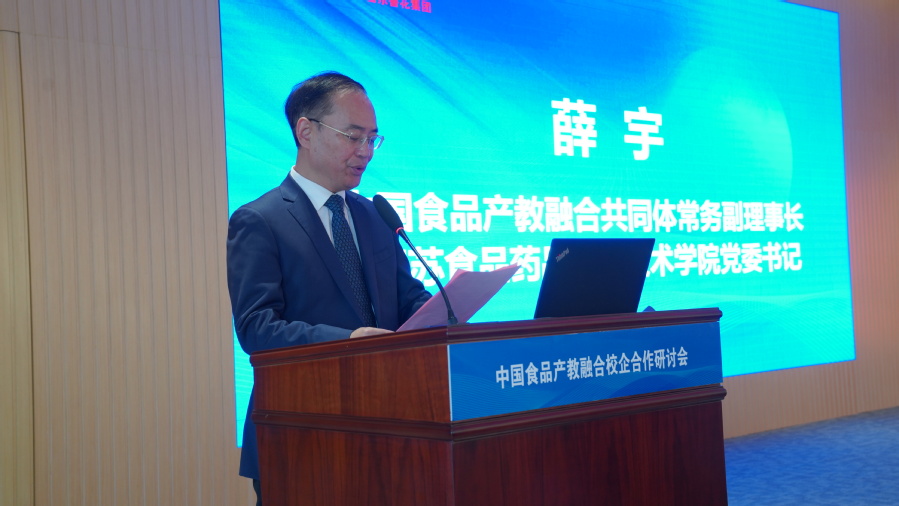 莱阳市委书记卢春玲在致辞中希望通过本次研讨会,更多科研成果转化能够首选莱阳、落地莱阳,更多优秀的人才能够关注莱阳、落户莱阳,实现“产教多极共赢、校企双向奔赴”的良好局面。全国食品工业职业教育教学指导委员会秘书长徐坚表示,校企合作不仅能够促进教育资源的优化配置,还能为食品产业发展注入新的活力,推动食品产业向更高端、更绿色、更智能的方向发展。薛宇书记在致辞中指出,中国食品产教融合共同体将围绕“一个平台(共同体),两条主线(教随产出,产随教行),三方协同(高校,职校,企业),四链联合(产业链、专业链、人才链、技术链),五金建设(专业、课程、教材、队伍、基地),六项任务(全方位整合校企产教资源,开放共亨,双向奔赴;全过程调和供需对接机制,清单先行,项目为王;全领域切合定向人才培养,教为企用,企为教培;全平台联合产业技术攻关,问题导向,成果为上;全周期结合开发教学资源,五金建设,双向奔赴;全链条融合强化保障力度,各美其美,美美与共)”的工作思路,融合全国食品行业最优质资源,推动共同体成员院校专业布局与产业结构布局基本匹配、教学内容与岗位任务高度契合、院校人才培养与企业人才需求精准对接,持续增强共同体服务全国食品行业发展新势能,多维立体擘画校企合作产教融合的大蓝图,将中国食品产教融合共同体建设成为全国一流、服务全球的国家级产教融合平台。
