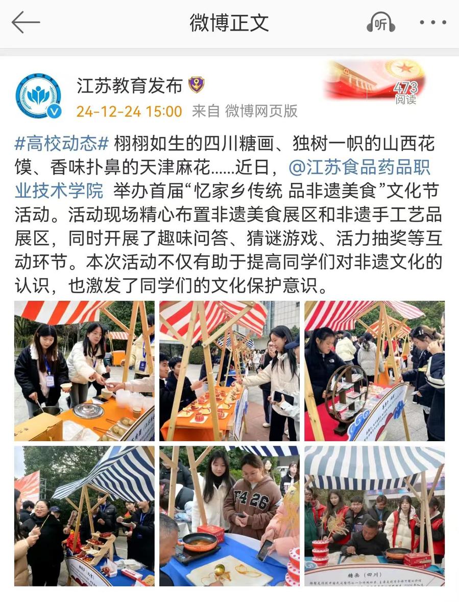 栩栩如生的四川糖画、独树一帜的山西花馍、香味扑鼻的天津麻花......近日,乐竞举办首届“忆家乡传统 品非遗美食”文化节活动。活动现场精心布置非遗美食展区和非遗手工艺品展区,同时开展了趣味问答、猜谜游戏、活力抽奖等互动环节。本次活动不仅有助于提高同学们对非遗文化的认识,也激发了同学们的文化保护意识。
