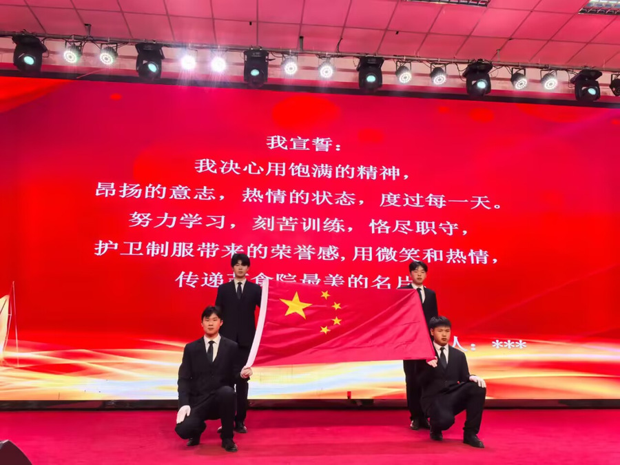 随后与会领导和合作企业嘉宾为学生逐一整理制服。学生正装肃立,高举右手进行了宣誓。学生表示将用饱满的精神、昂扬的意志,努力学习,刻苦训练,恪尽职守,护卫制服带来的荣誉感,用微笑和热情传递苏食院最美的名片。