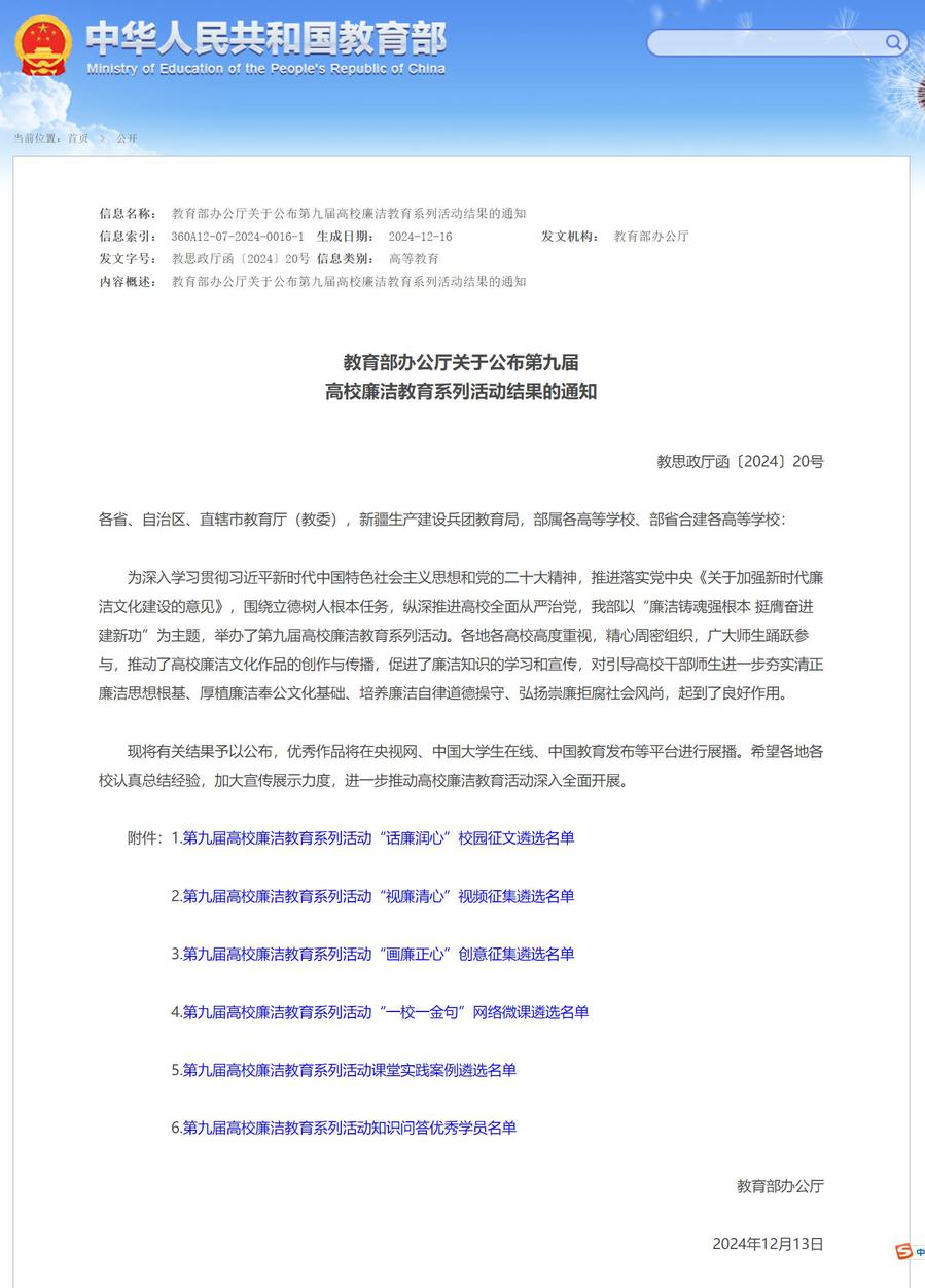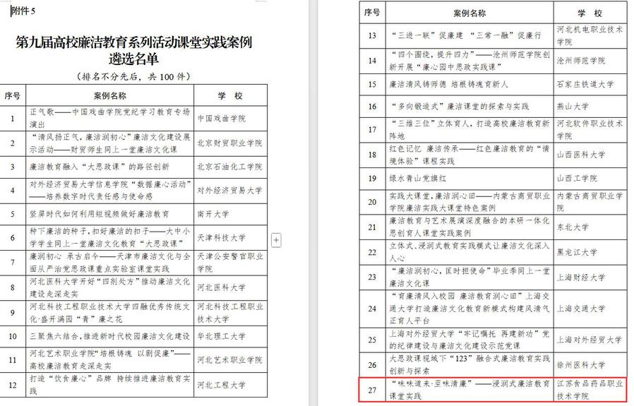 近日,教育部办公厅公布了第九届高校廉洁教育系列活动结果,酒店学院党总支报送的《“味味道来·至味清廉”——浸润式廉洁教育课堂实践》案例入选教育部廉洁教育系列活动课堂实践案例。全国共100件作品入选,江苏省仅1家高职校入选。