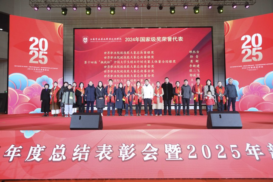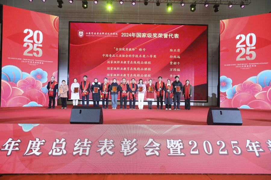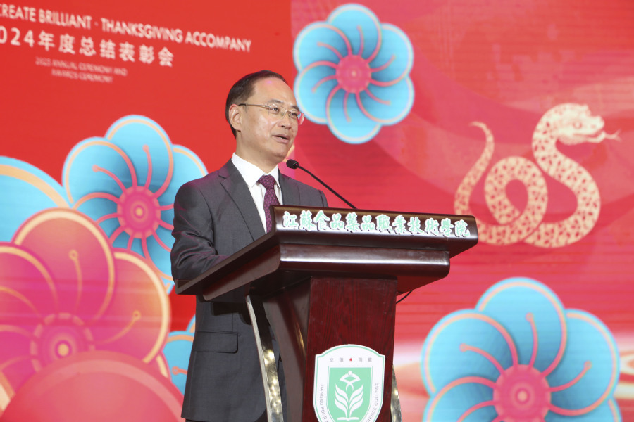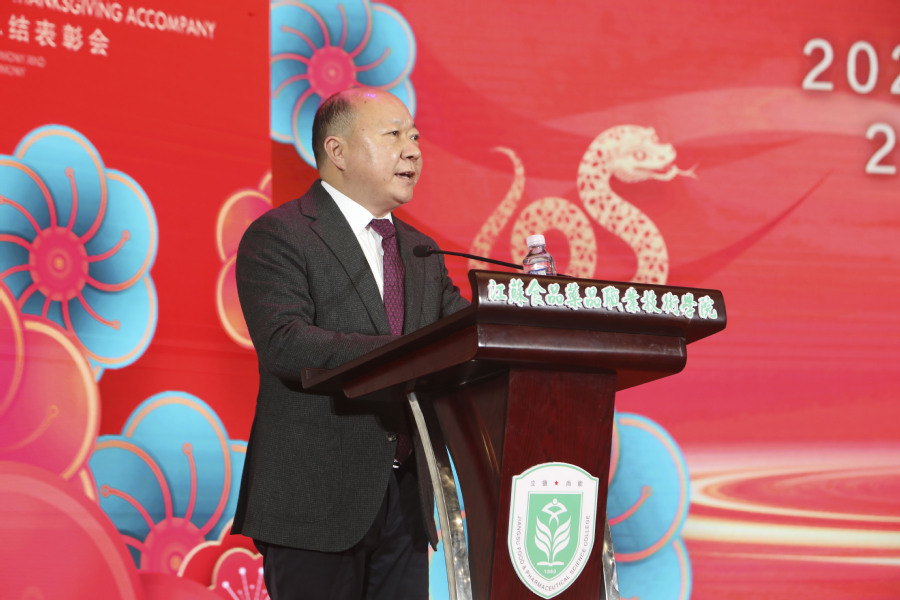 薛宇书记致新春贺词。他表示,感恩伟大时代给予我们职业教育大有作为的空间,感恩江苏省委省政府、省教育工委和淮安市委市政府给予的大力支持,特别是感恩我们全体教职工家属的帮助和关怀。感动全体教职工不计得失、甘于奉献,感动每一个拼搏的瞬间。感谢服务单位、合作企业、校友企业为学校发展提供的有力保障,感谢全体教职工的无私付出,感谢全体学生给学校带来的生机与活力。他希望大家团结一心、携手共进,聚精会神谋发展,心无旁骛干事业,在加快建设教育强国的时代大潮中乘风破浪,奋力书写“强国建设、食院担当”时代篇章!