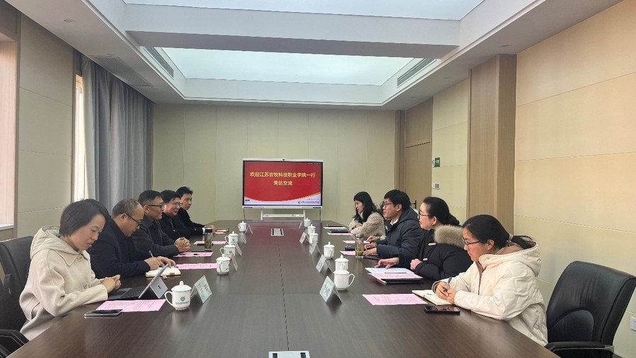 2月18日下午,江苏农牧科技职业学院副校长唐现文一行5人来乐竞学习交流,乐竞副校长焦宇知热情接待了来宾。