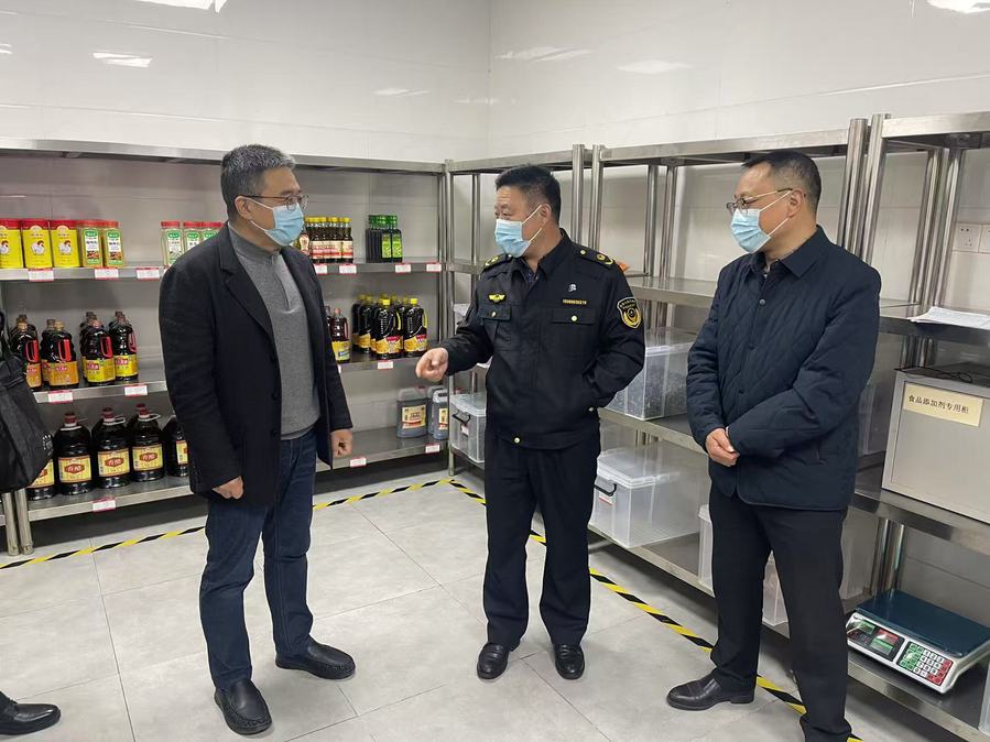 检查组一行先后深入学校三个托管学生餐厅及自营教工餐厅,对餐厅的食品原材料采购、储存条件、加工操作流程、餐具清洗消毒、从业人员健康管理等关键环节进行了细致检查。在检查过程中,领导对乐竞食品安全管理工作表示充分肯定,对学生餐厅设立的食安驿站、“你点我检”服务站及教工餐厅“明厨亮灶”工程表示高度认可。