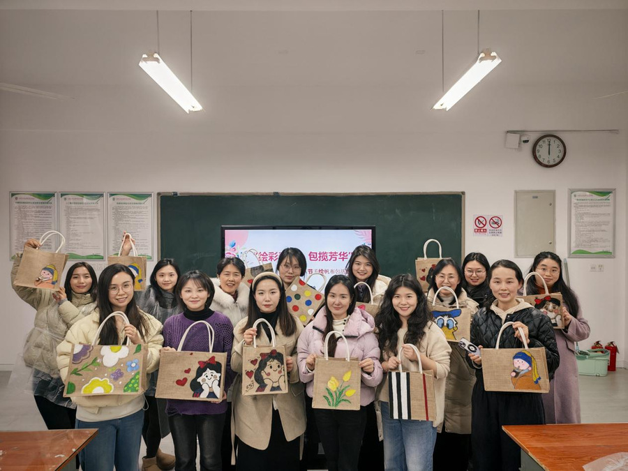 人工智能学院举办“绘彩春日,包揽芳华”手绘帆布包活动。女教工们纷纷拿起画笔,在帆布包上尽情挥洒创意。有的绘制了绚丽的花朵,有的描绘了清新的自然风景,还有的写下了激励人心的文字。每一笔色彩都展现了她们的巧思与才华,每一件作品都充满了独特的艺术魅力。(赵梦)