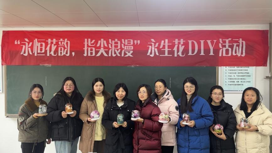 食品药品研究院联合实验实训管理中心、财务处和审计处,举办了一场永生花DIY活动,在馥郁花香中体验艺术创作的魅力,用巧手定格春日芬芳,传递绿色生活理念。活动现场,玫瑰、绣球、康乃馨等花材均采用食品级干燥剂处理,辅以天然染色工艺,展现了专业与美学的深度融合。她们化身“花艺设计师”,精心挑选花材、修剪枝叶、构思布局,将永生花与干枝、苔藓等自然元素巧妙结合。活动现场,欢声笑语与花香交融,一件件独具匠心的作品定格了女教职工们的优雅与智慧。(李梦雪)