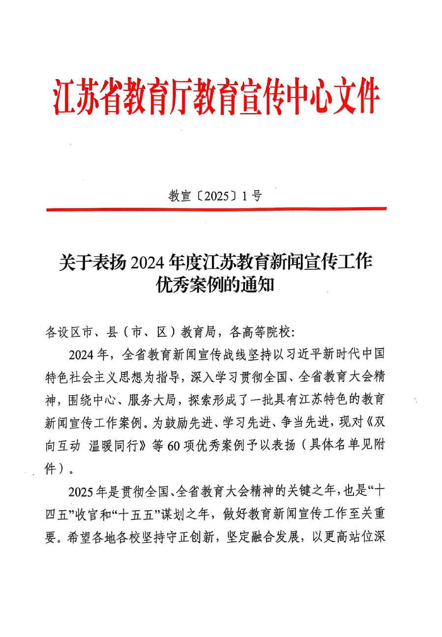 3月10日,江苏省教育厅教育宣传中心印发《关于表扬2024年度江苏教育新闻宣传工作优秀案例的通知》,由乐竞党委宣传部报送的《食药赋能 打造“大健康”宣传品牌》案例被评为2024年度江苏教育新闻宣传工作优秀案例,全省只有20所高职院校入选。