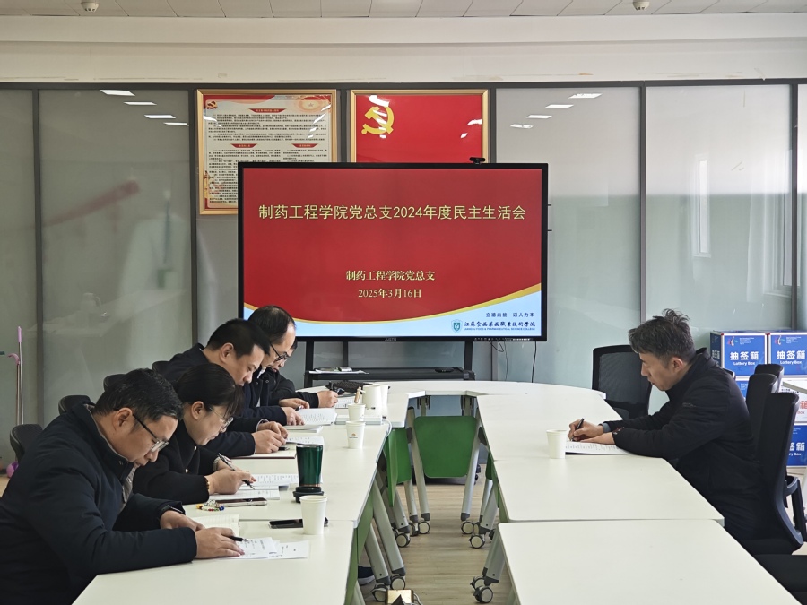 3月16日上午,制药工程学院党总支召开2024年度民主生活会,校党委委员、副校长贾韶千到会指导,学院党总支书记王涛济主持会议,党总支全体领导班子成员参会。