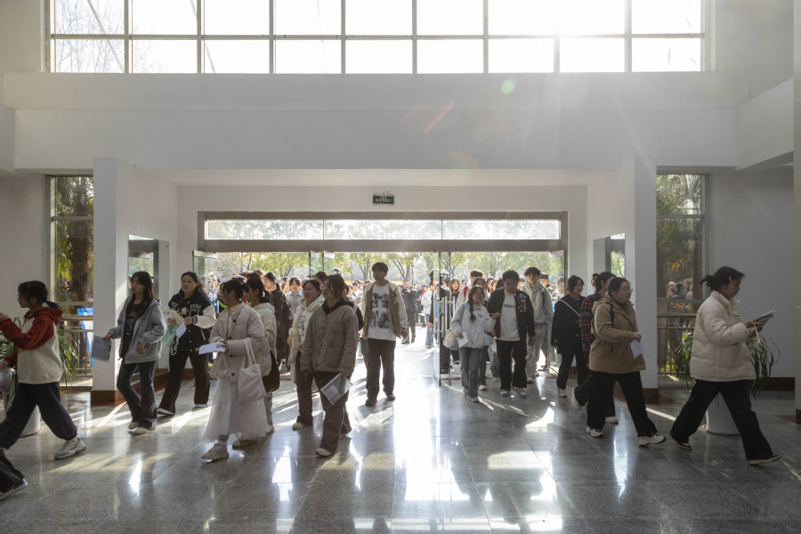 考生亲属在考场外等候