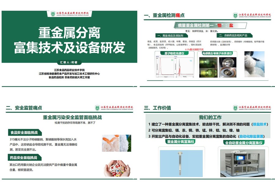 针对药食产品加工中重金属污染检测这一行业痛点,团队依托乐竞CMA(计量认证)和CNAS(国际互认)双资质检测平台,历时三年开展技术攻关。项目创新性地开发出多合一重金属分离富集技术,成功研制高效率的全自动重金属分离富集设备。经第三方验证,该技术设备可全面去除基质干扰效应,将痕量重金属检测灵敏度提升10倍,有效破解了复杂基质样品前处理难题,为药食产品质量安全筑起技术防线。