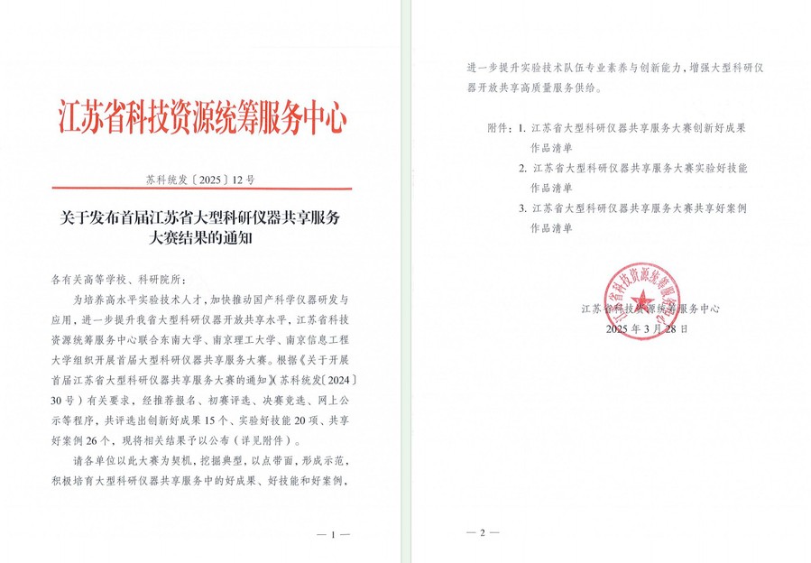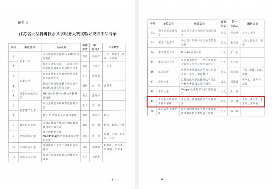 3月28日,由江苏省科技资源统筹服务中心(省科技厅直属单位)联合东南大学等三所重点高校举办的首届大型科研仪器共享服务大赛结果公布。乐竞精准健康药食产品开发与加工技术工程研究中心团队师生凭借《重金属分离富集技术及设备研发》项目,从全省高校、科研院所百余份参赛项目中脱颖而出,荣获“实验好技能奖”,成为该奖项唯一获奖的高职院校,彰显了学校在应用型科研领域的突破性进展。