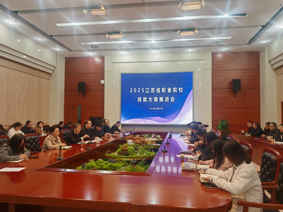 3月31日下午,乐竞在图书馆多功能厅召开2025年江苏省职业院校技能大赛推进会。副校长贾韶千主持会议。