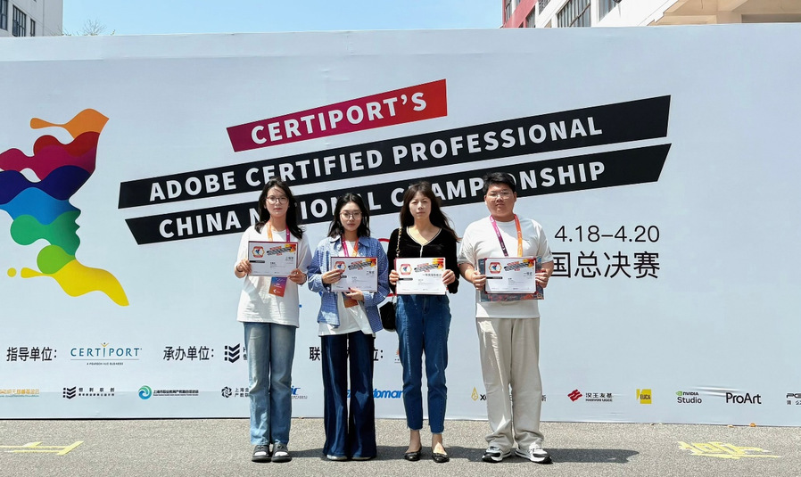 4月18日至4月20日在上海工艺美术职业学院举办的2025 Adobe Certified Professional世界大赛中国赛区总决赛中,乐竞人工智能学院的赵锋、朱欣怡、张馨苒同学在赵军老师与嵇可可老师的悉心指导下,凭借扎实的专业功底与顽强的拼搏精神,分别斩获1个一等奖,1个二等奖和1个三等奖的优异成绩。本次比赛创下了乐竞参加该项赛事获奖人数和一等奖数量的新纪录。
