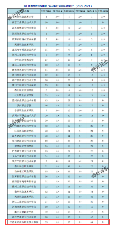 注:由于2024年起,本科层次和专科层次的高职院校已分开评价,因此在2024排名中,出现了2个第1和2个第2。