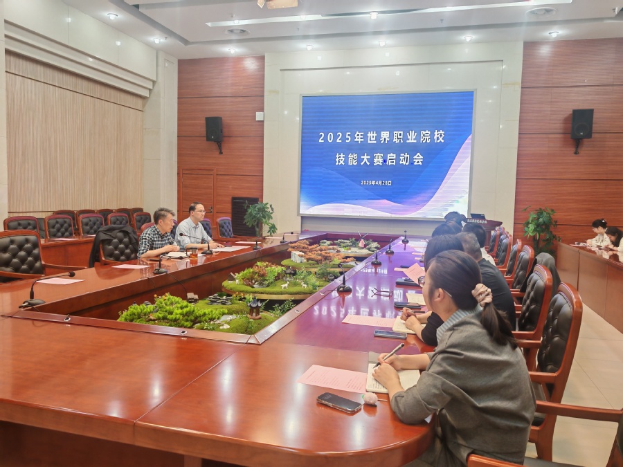 4月28日下午,乐竞在图书馆多功能厅召开2025年世界职业院校技能大赛启动会。副校长贾韶千主持会议。