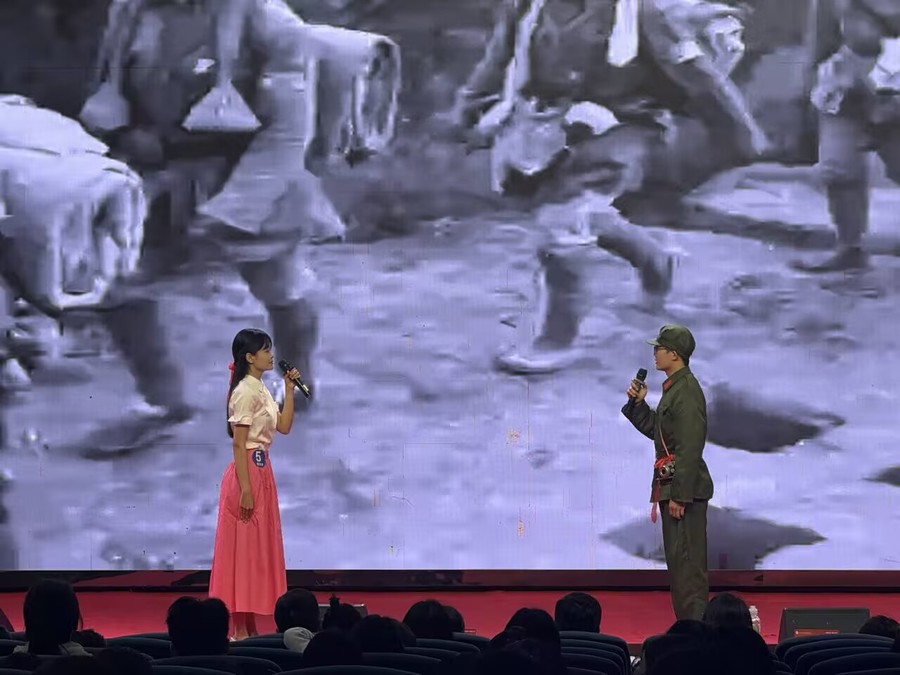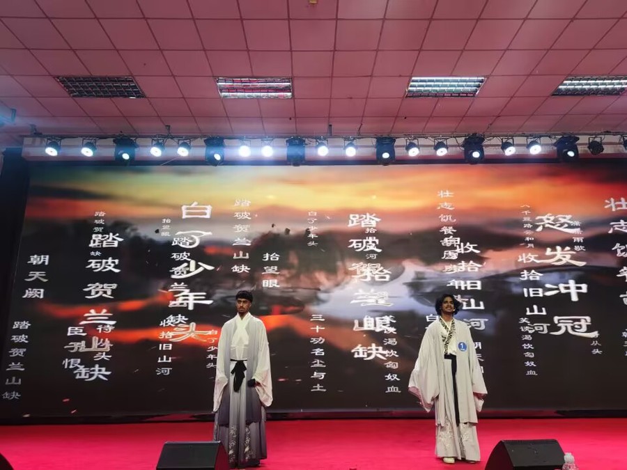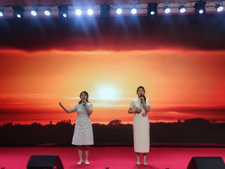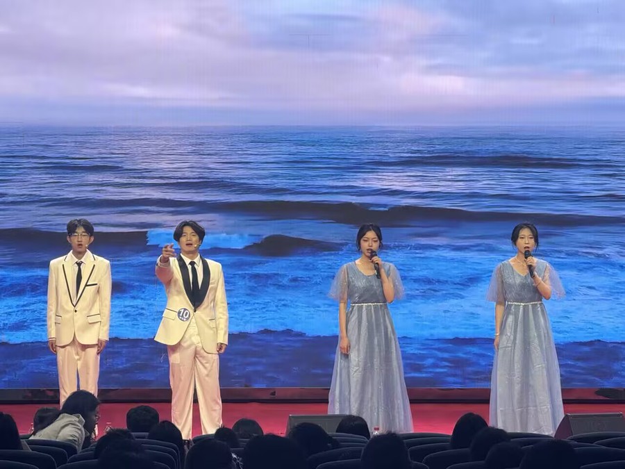 大赛自4月份启动,共有7组教师作品和15组学生作品进入决赛。比赛现场气氛热烈,选手们用声音叩响经典之门,以饱满的精神状态和良好的朗诵艺术,将经典篇章演绎得淋漓尽致。教师选手以深厚的朗诵功底打动全场。洪泽湖产业学院教师们深情演绎《读中国》,带领观众穿越五千年文明长河;智能制造学院教师诵读的《红铁》再现革命先烈的铮铮铁骨,令人热血沸腾;酒店学院教师合作的《青春中国》则用激昂的语调描绘新时代的蓬勃气象;药学院教师通过《家风颂》的诵读,传递出中华传统美德的深远力量。学生选手的表现同样精彩纷呈。国际教育学院留学生以慷慨激昂的《满江红》开场;《我的南方和北方》在护理学院四位同学的诵读中,展现了祖国山河的壮美与乡愁;药学院两位同学诵读的《相机上的红丝绳》以真挚的演绎赋予文字鲜活的生命力,展现了战争年代的血脉传承与新时代的精神守望;酒店学院四位同学诵读的《红旗渠》再现了“人工天河”的奋斗史诗。