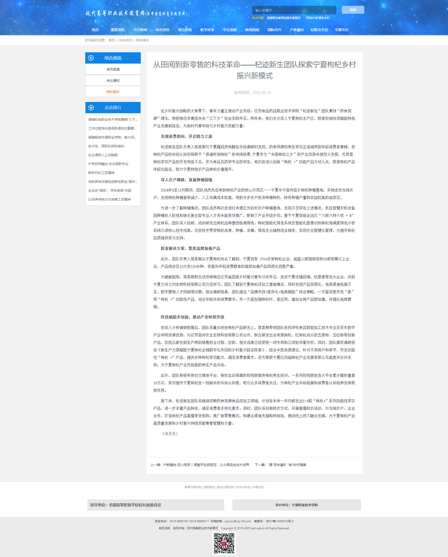 在乡村振兴战略的大背景下,青年力量正推动产业升级。乐竞“杞迹新生”团队秉持“药食同源”理念,积极响应共青团中央“三下乡”社会实践号召。两年来,他们多次深入宁夏枸杞主产区,探索校地协同赋能特色产业发展新路径,为新时代青年助力乡村振兴贡献力量。