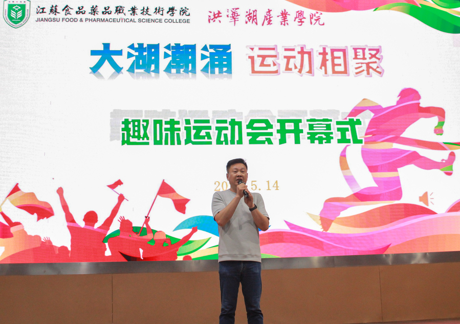 5月14日,洪泽湖产业学院第三届大湖潮涌·运动欢聚趣味运动会在文体中心开幕,活动吸引了全院五百余人次参与。