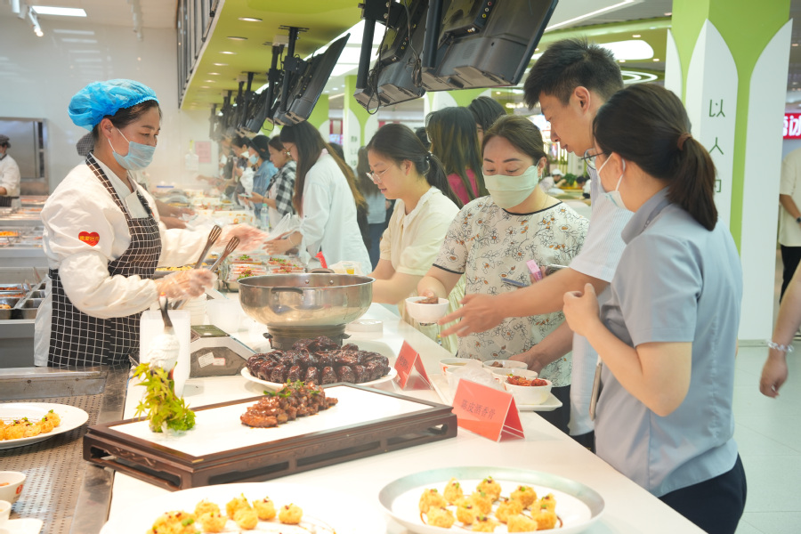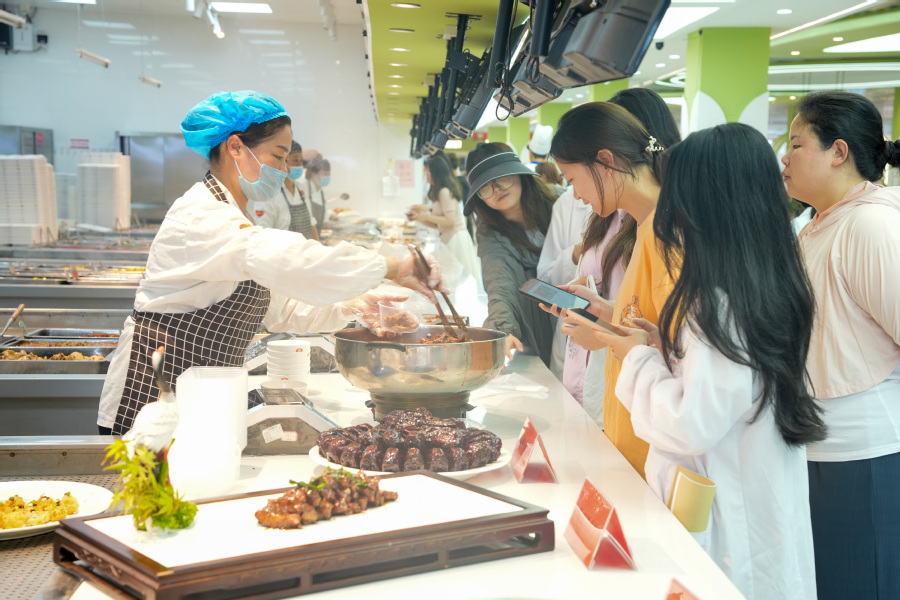 乐竞5位新聘任的兼职教授,在乐竞二食堂现场烹饪了5道淮扬精品菜,并向师生售卖。现场氛围热烈,师生纷纷驻足观赏购买,好评一片,表示在校园里品尝到了国家级烹饪大师的拿手菜,名厨名菜进校园,也幸福校园建设增色添香。