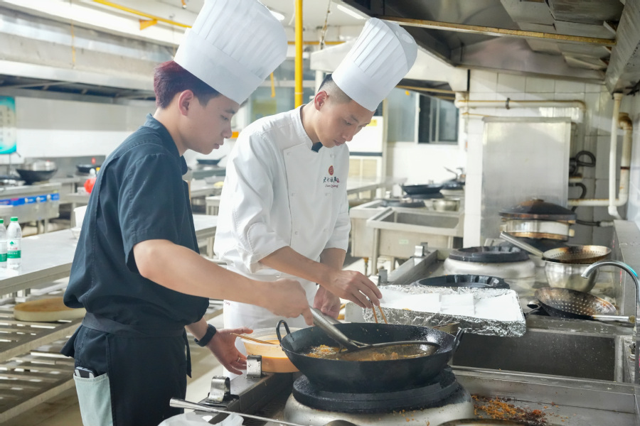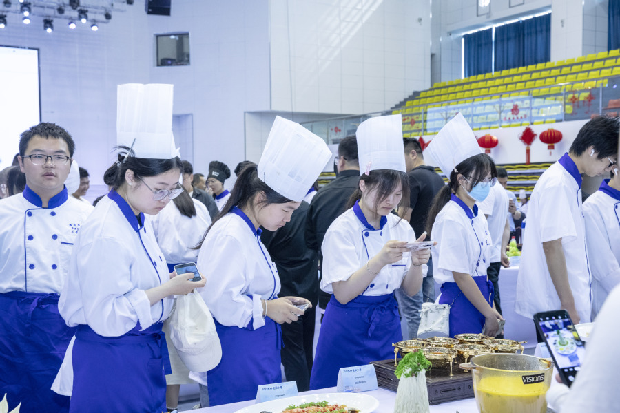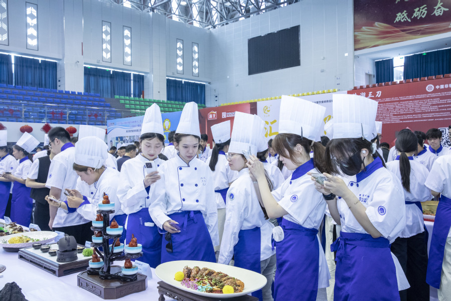 在2025第二届苏味匠厨大会现场,120余道由酒店名厨和行业大师精心制作的淮扬菜精品惊艳亮相。这些参赛作品体现了传统工艺与现代创新的完美融合,现场的操作、摆盘等吸引了众多烹饪工艺与营养专业群学生驻足观摩,用镜头记录下这些融合传统技艺与现代创新的精美作品。这场高水平的厨艺展示不仅为学生提供了宝贵的学习机会,更展现了淮扬菜文化的独特魅力,是一次生动鲜活的烹饪课堂。