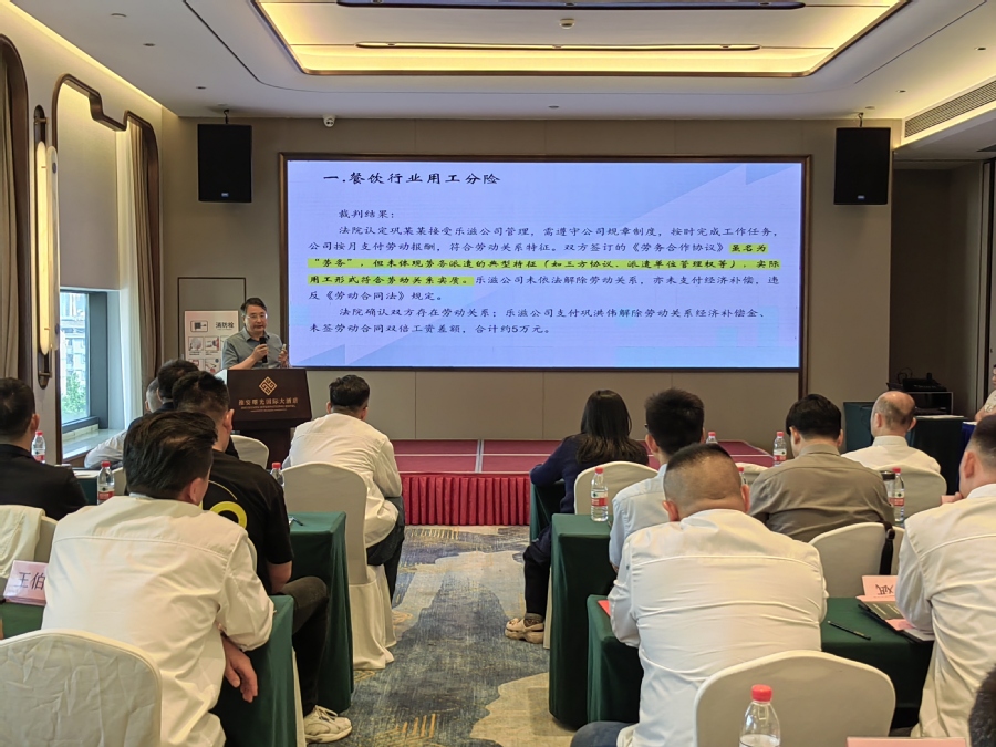 北京盈科(淮安)律师事务所主任时洪生以“餐饮行业法律风险防控”为主题,结合典型案例,深入剖析了餐饮经营中常见的法律纠纷及应对策略,帮助从业者增强法律意识,规避经营风险。中华保险淮阴支公司业务经理王英则详细介绍了食品安全责任保险方案,强调保险在食品安全事故中的保障作用,助力餐饮企业稳健发展。
