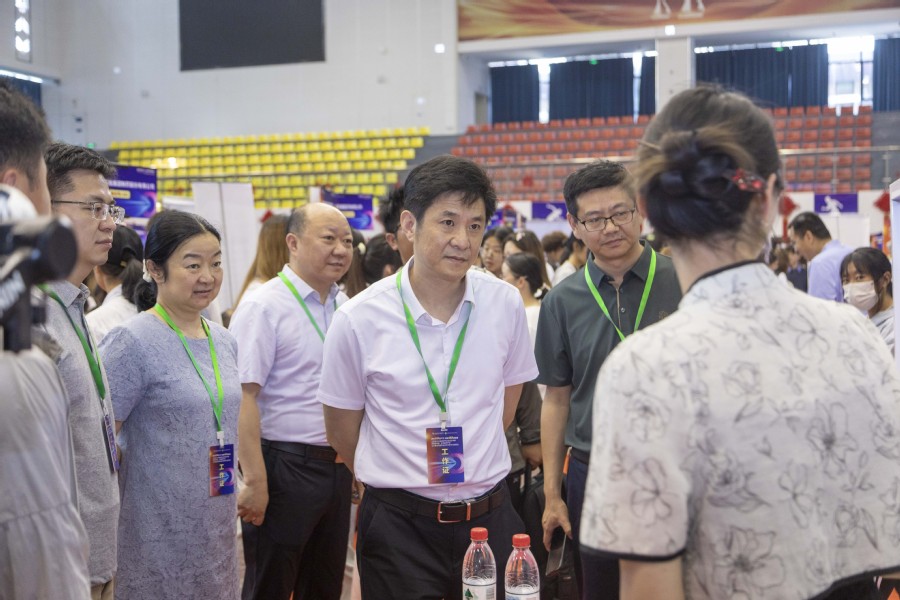 江苏省高校招生就业指导服务中心主任缪榕楠、校长翟玮玮、校党委副书记安进等来到招聘会现场,与用人单位代表和毕业生亲切交流,详细了解各参会单位招聘计划、毕业生就业意向和求职进展。
