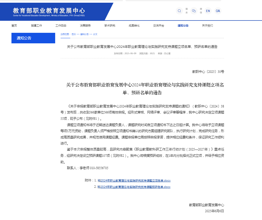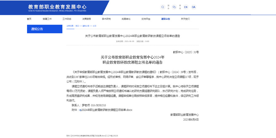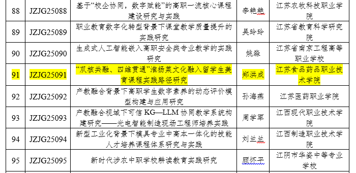据通告,全国共有1367家单位择优推荐申报2163项教研教改课题,566家单位择优推荐申报566项教育理论与实践支持课题,经形式审核、网络评审、会议评审等程序,教育部职业发展中心共立项217项教研教改课题、55项教育理论与实践研究支持课题和107项预研课题,立项率约10%。乐竞能同时入围两类课题,在全国1600余所高职高专(含职业本科)院校中位居前列,是紧密对接江苏省“1650”产业体系中新型食品集群研究方面的一次重要突破,彰显了学校在职业教育教研教改和教育理论与实践研究方面的深厚功底。