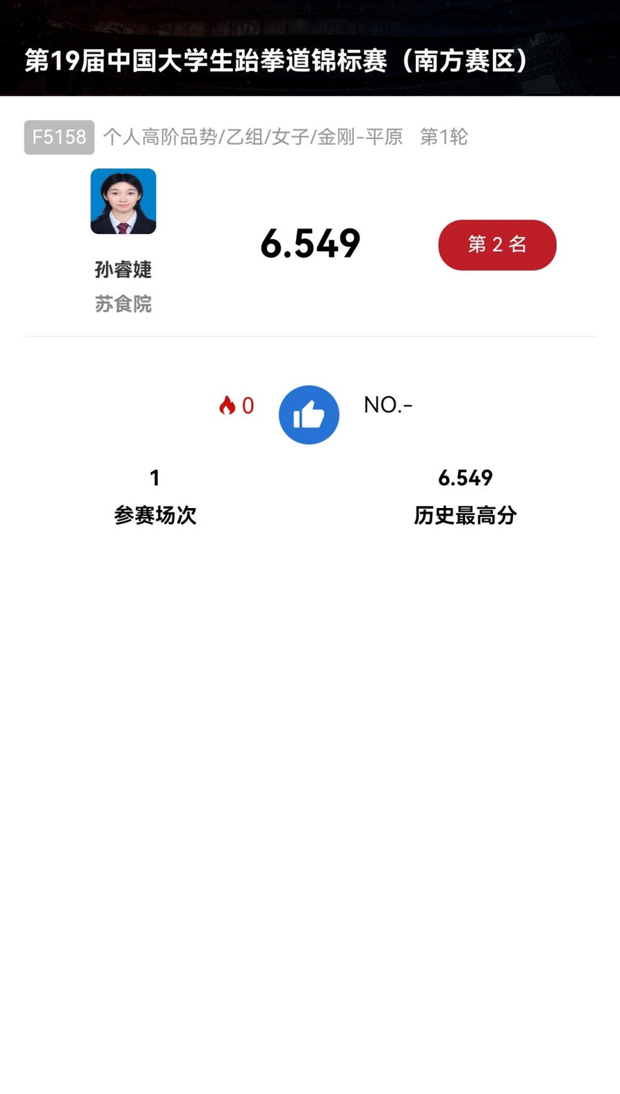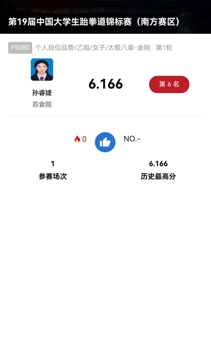 乐竞数字经济学院会计242班孙睿婕同学参加了三个项目的比赛,获得乙组女子竞技-53KG级铜牌,个人高阶品势乙组女子(金刚-平原)银牌,个人段位品势乙组女子(太极八章-金刚)第6名。孙睿婕同学凭借坚持不懈的努力训练,在赛场上奋勇拼搏,为学校赢得了荣誉,也让自己的付出得到了丰厚的回报。她不仅取得了优异的运动成绩,更展现出了良好的精神文明风貌,实现了运动成绩与精神文明的双丰收。