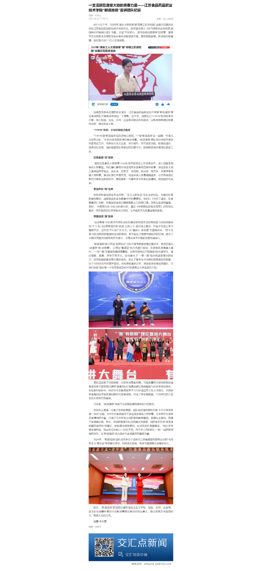 2024年,“新语淮扬”团队成功承办了由中共江苏省委宣传部等主办的“马克思主义·青年说”专场宣讲活动,引起很大反响,受学习强国等众多媒体关注。