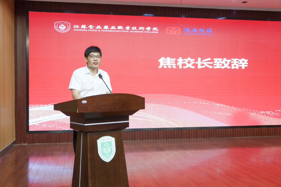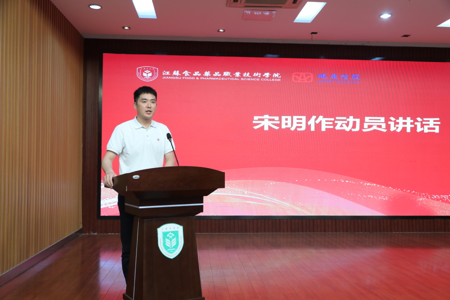 宋明代表企业方发言。他代表鹏鼎控股感谢学校为企业培养了大批优秀的人才。他指出,鹏鼎控股是全球第一大PCB企业,在行业内拥有全球第一大研发团队、全球第一大智能工厂、全球第一大生产团队。2024年在苏食院组建的第一届“雏鹰班”同学,目前活跃在企业重要的技术岗位上,对企业的飞速发展起到了积极的贡献。宋明对乐竞产教融合工作给予了高度赞扬,对乐竞人才培养质量表示了充分肯定。