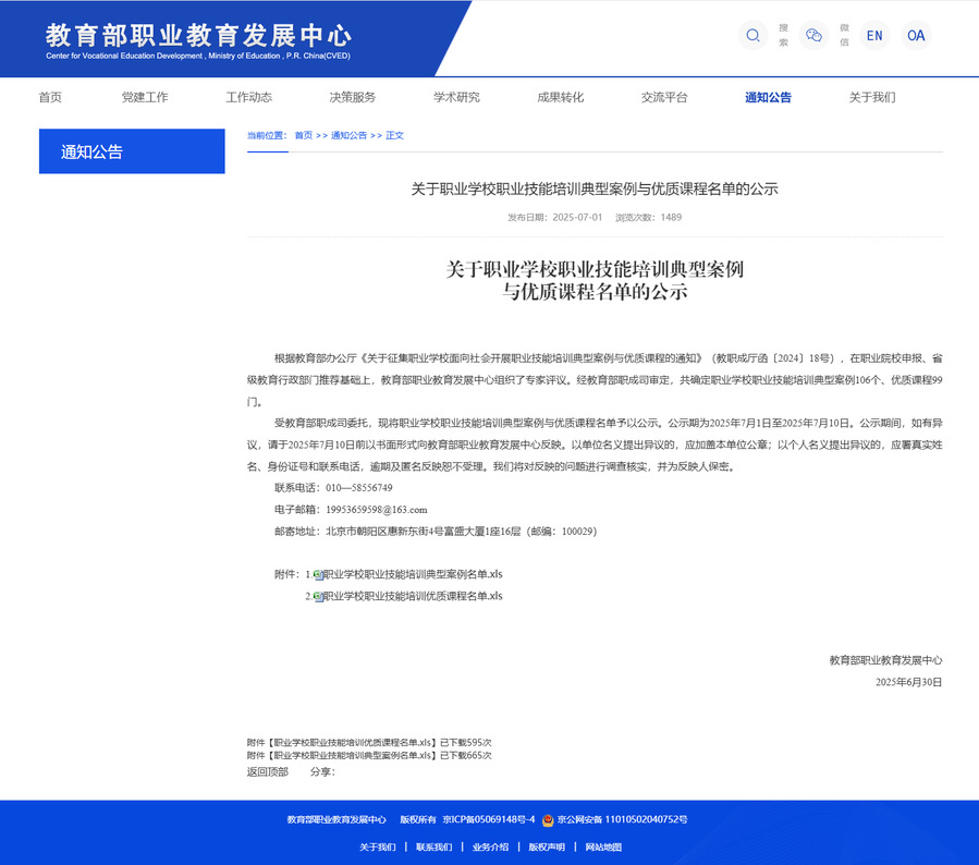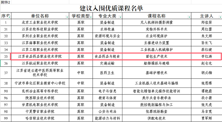 根据教育部办公厅《关于征集职业学校面向社会开展职业技能培训典型案例与优质课程的通知》(教职成厅函〔2024〕18号),在职业院校申报、省级教育行政部门推荐基础上,经教育部职业教育发展中心专家评议。教育部职成司审定,共确定职业学校职业技能培训典型案例106个、优质课程99门。乐竞李红涛老师的《面包生产技术》培训课程,被评为教育部职业学校职业技能培训优质课程。全省仅6所高职院校入选。